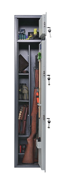 Сейф Беркут 150/2 (уцененный) предназначены для хранения огнестрельного оружия сейфы соответствуют требованиям ст.59 Постановления правительства РФ № 814 от 21 июля 1998 года О мерах по регулированию гражданского и служебного оружия и патронов к нему на территории РФ Изготовлен из металла толщиной 2 мм. Максимальная высота ствола 1220 мм. Вместимость сейфа 4 ствола. Сейф комплектуется блоком из 4 полок+1 полка в патронном отделении, ложементами. Размер патронного отделения (ВхШхГ), мм 230х296х254 Закрывается ключевым замком Цвет: графит структурированный. Тип покрытия порошковое.